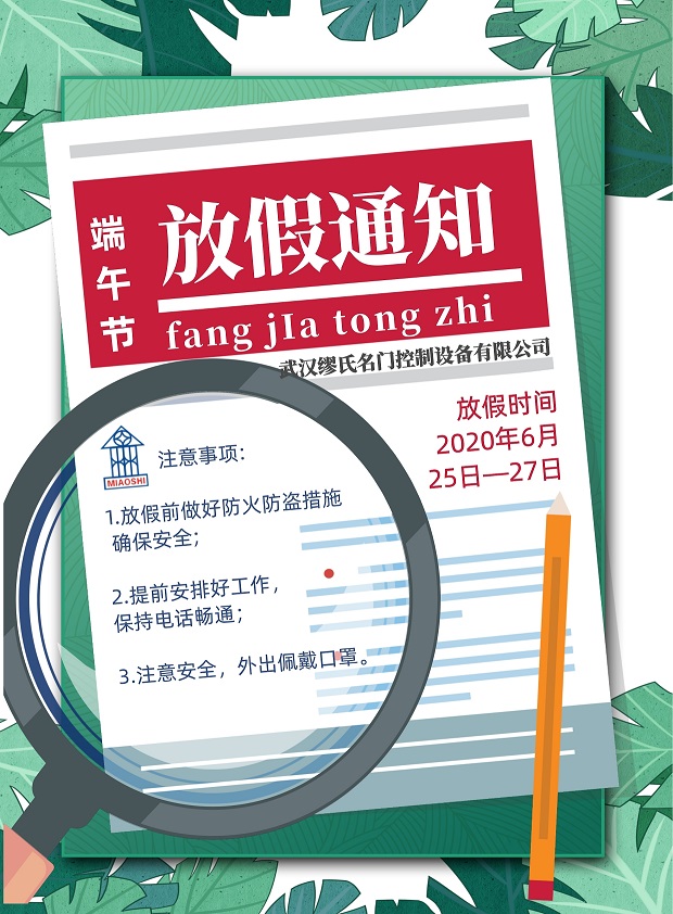 武漢繆氏控制設(shè)備有限公司:端午節(jié)放假三天,祝大家節(jié)日安康!